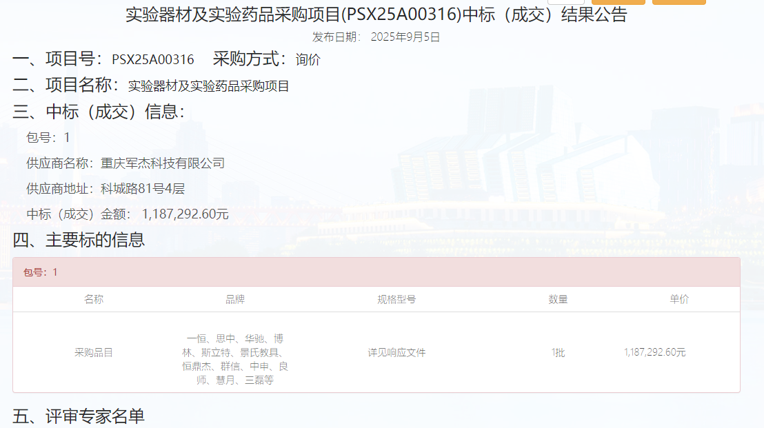 彭水苗族土家族自治县民族中学实验器材及实验药品采购项目(第二次)